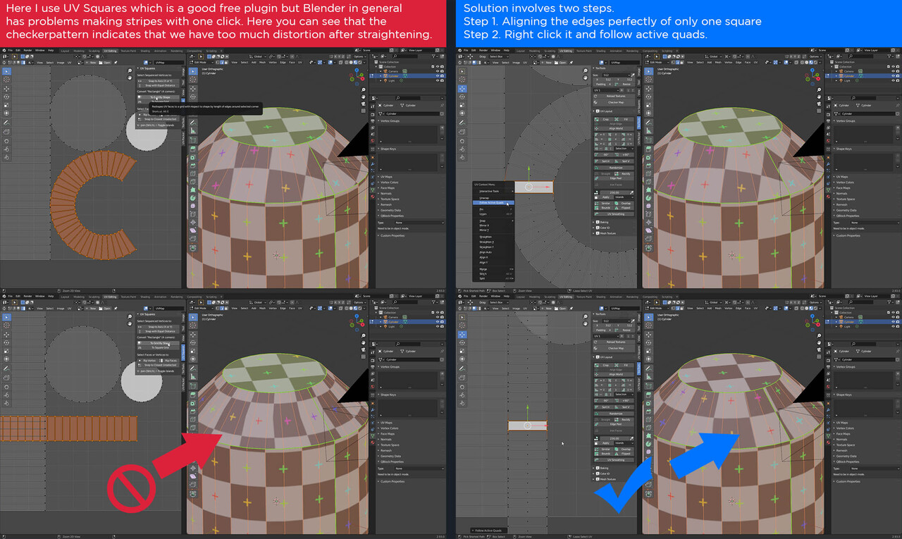 Blender's unwrapping tools get a bit of mixed reviews and I can understand why as someone who comes from 3DsMax but as always we can navigate around these issues as we wait for future tools being added to Blender. One of the main complaints that I have is that there is no one button solution to straighten out "stripes" from a cylinder. So far this only seems to work with one click if the cylinder doesn't have any different size for the top or bottom cap. However there are ways of doing this mainly by following these steps:
