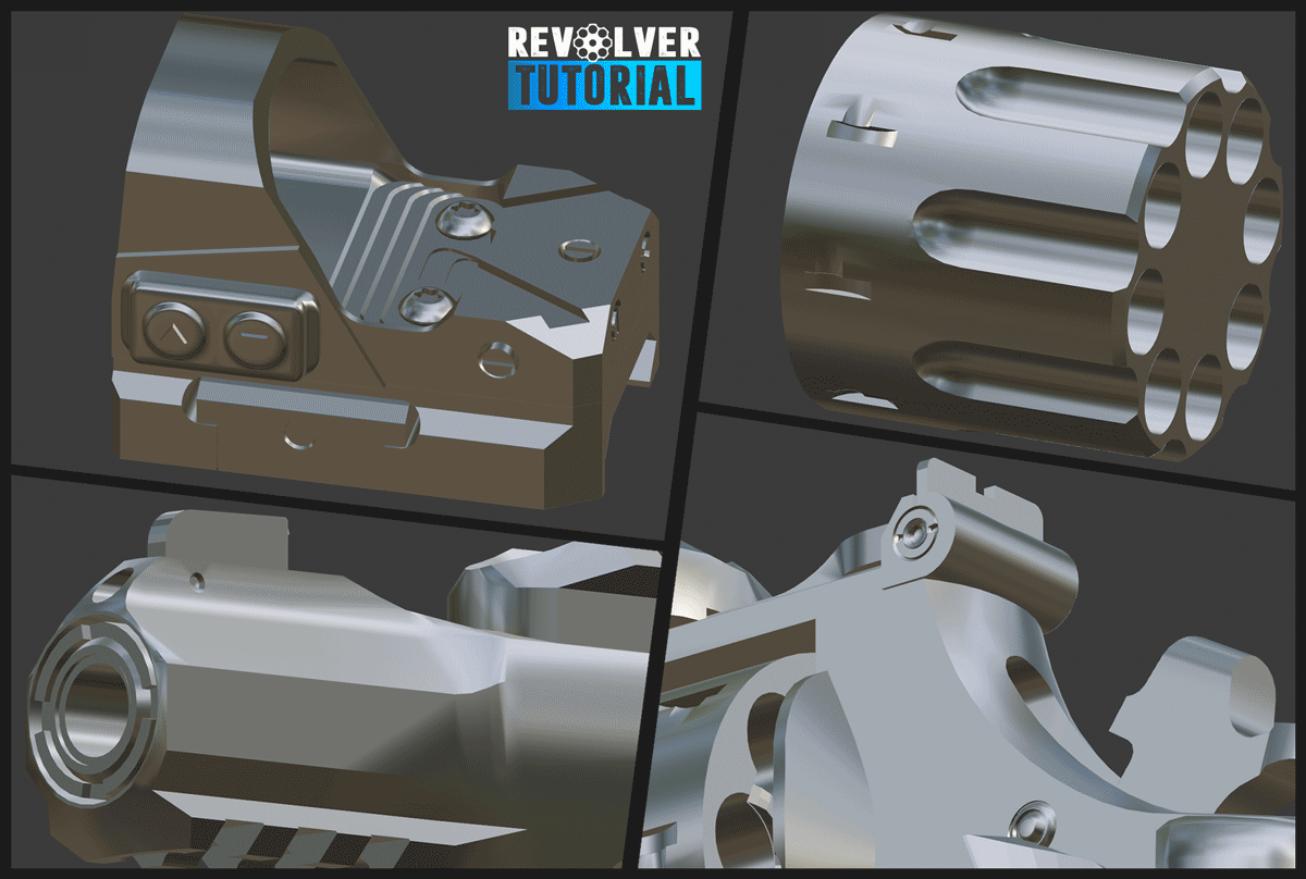 The Revolver Tutorial is an all new state of the art weapon tutorial featuring Blender as well as Marmoset Toolbag 4 and Substance Painter for baking, texturing and portfolio ready renders. Create a customizable revolver together with two mountable attachment pieces for it: a flashlight as well as reflex scope as you would find in almost any modern video game these days. We built the revolver fully detachable: you can even take the rail off. For that we're going to work with Substance Painter, Marmoset Toolbag 4 as well as Blender where we spend quite a bit of time in as we work on our models.